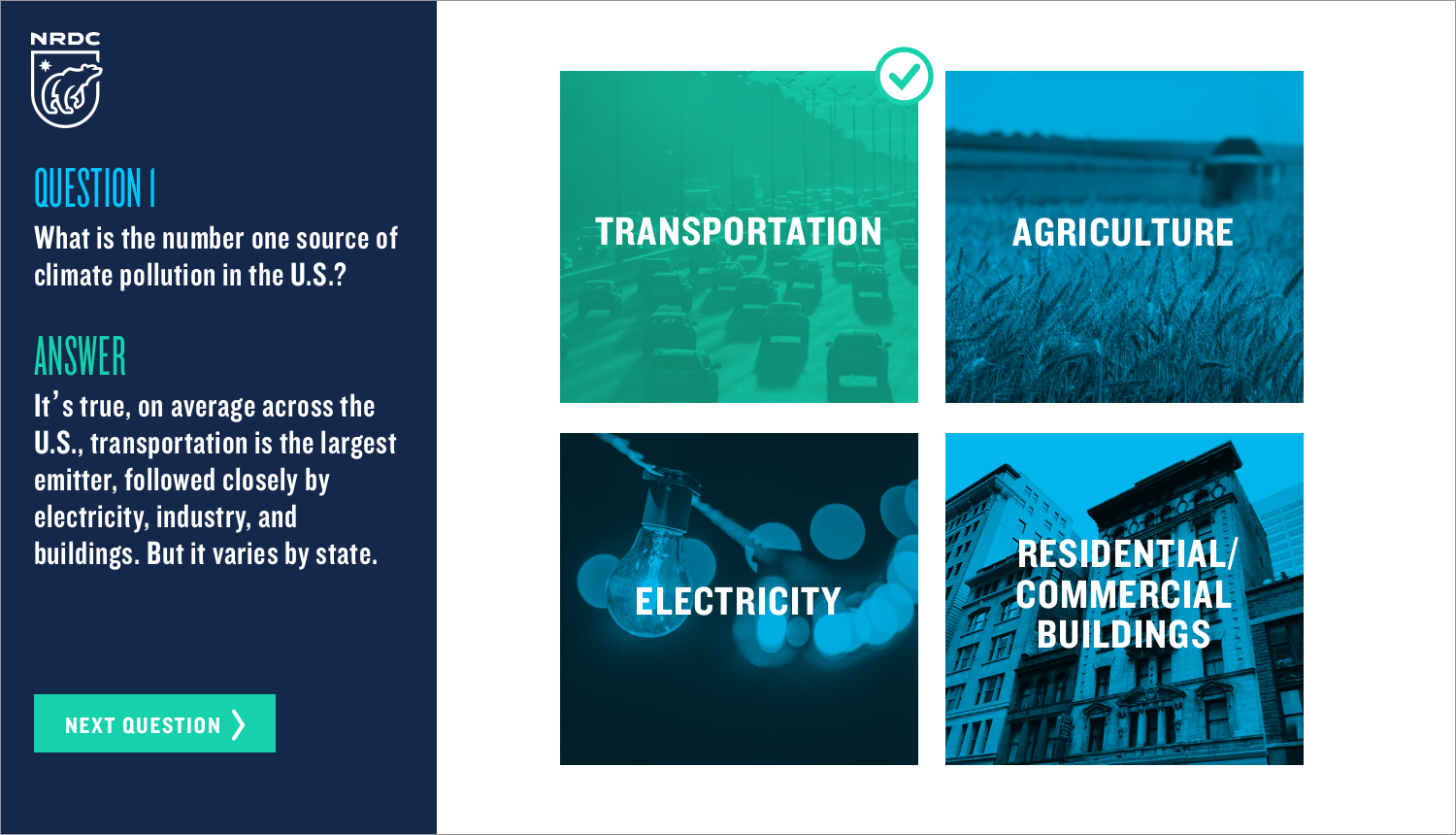 I used bright, high contrast colors from NRDC's brand book and simple shapes to give a friendly feel and encourage users to participate.
